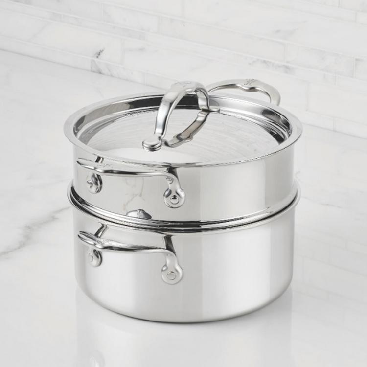 Elegant by Design. Engineered for performance. ProBond® Luxe was recognized with a 2025 Red Dot Product Design Award. Designed in Napa and handcrafted in Italy, the NEW ProBond® Luxe Professional Clad Stainless Steel cookware collection impresses with the power of Hestan's best-in-class ProCore™ aluminum core, for 35% greater heat conductivity, and is finished with a radiant, jewelry-like polished stainless steel exterior for lasting brilliance. Built to shine, ProBond® Luxe also boasts superior tri-ply clad stainless steel construction for lifetime warp-resistance. Hestan's signature sealed rims prevent delamination and offer dishwasher-safe convenience. Each Luxe vessel is induction-suitable, helping you unlock true heat performance, while raising the bar for innovation with seamless Handles designed by Michelin-star awarded Chef Thomas Keller that eliminate the food-trapping crevice, and are finished with smooth flush rivets for easy cleanup. Oven and broiler safe to 600ºF. Purposeful innovation, functionality, and Italian craftsmanship converge with the ProBond® Luxe 3-Quart Polished Professional Clad Stainless Steel Soup Pot and Steamer Insert Set. Ideal for healthy steamed preparations, including vegetables, fish, or Asian-style dumplings, this ProBond® Luxe vessel brings precision performance to your home kitchen.