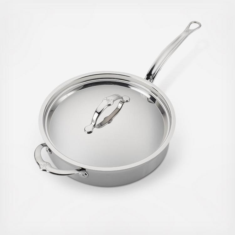 For superior form and function from optimized cold forged construction, equip the kitchen with the ProBond Forged Stainless Steel Saute with Helper Handle. Handcrafted in Italy to meet the highest quality standards, ProBond cookware is constructed from cold-forged steel, providing a thicker base for even heat distribution, thinner side walls for lighter weight, and thicker rims for increased durability. Induction-stove suitable and oven safe to 500°F, this completely innovative ProBond saute pan is triple bonded with a pure aluminum core for maximum heat conductivity with sealed, flared rims for easy pouring. The ideally weighted, ergonomic handle and convenient helper handle prevent twisting and turning when lifting larger portions, and flush rivets make for easy cleaning and easier stacking of cookware in the cabinet to minimize surface scratches. A stainless steel lid seals in heat and moisture, and coordinates beautifully with the brushed stainless steel exterior to keep your cookware looking like new for a lifetime. For the unmatched durability and superior performance you want in professional cookware, reach for the innovative ProBond Forged Stainless Steel Saute with Helper Handle.
