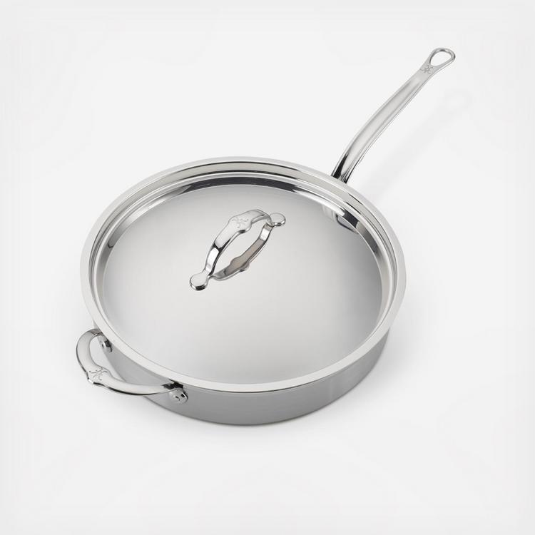 For superior form and function from optimized cold forged construction, equip the kitchen with the ProBond Forged Stainless Steel Saute with Helper Handle. Handcrafted in Italy to meet the highest quality standards, ProBond cookware is constructed from cold-forged steel, providing a thicker base for even heat distribution, thinner side walls for lighter weight, and thicker rims for increased durability. Induction-stove suitable and oven safe to 500°F, this completely innovative ProBond saute pan is triple bonded with a pure aluminum core for maximum heat conductivity with sealed, flared rims for easy pouring. The ideally weighted, ergonomic handle and convenient helper handle prevent twisting and turning when lifting larger portions, and flush rivets make for easy cleaning and easier stacking of cookware in the cabinet to minimize surface scratches. A stainless steel lid seals in heat and moisture, and coordinates beautifully with the brushed stainless steel exterior to keep your cookware looking like new for a lifetime. For the unmatched durability and superior performance you want in professional cookware, reach for the innovative ProBond Forged Stainless Steel Saute with Helper Handle.