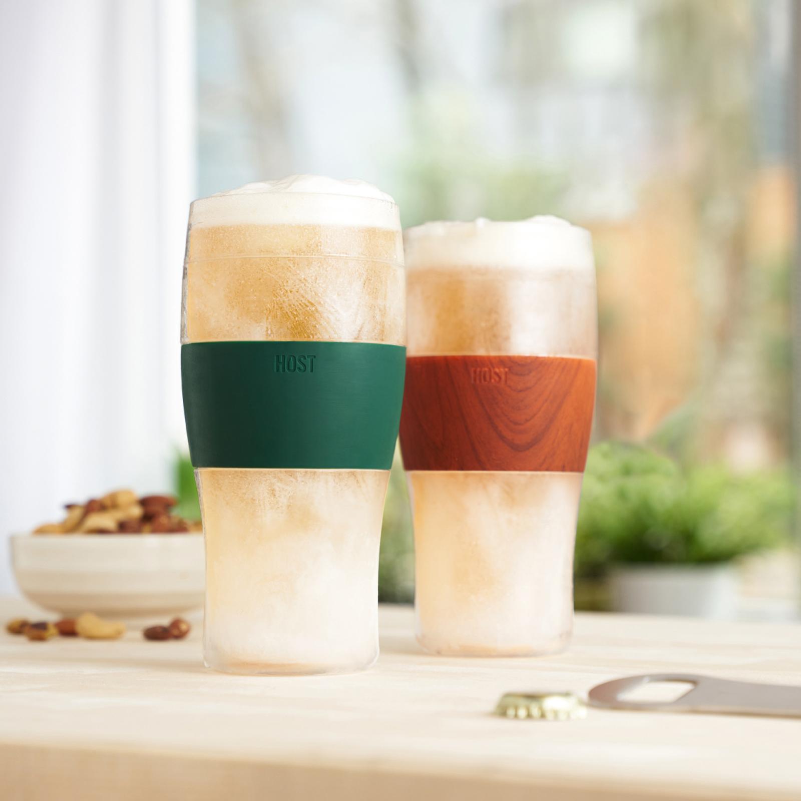 Insulated walls filled with proprietary cooling gel work as a beer chiller when frozen. Pop in the freezer for two hours to keep your beverage between forty-three and fifty-three degrees Fahrenheit.