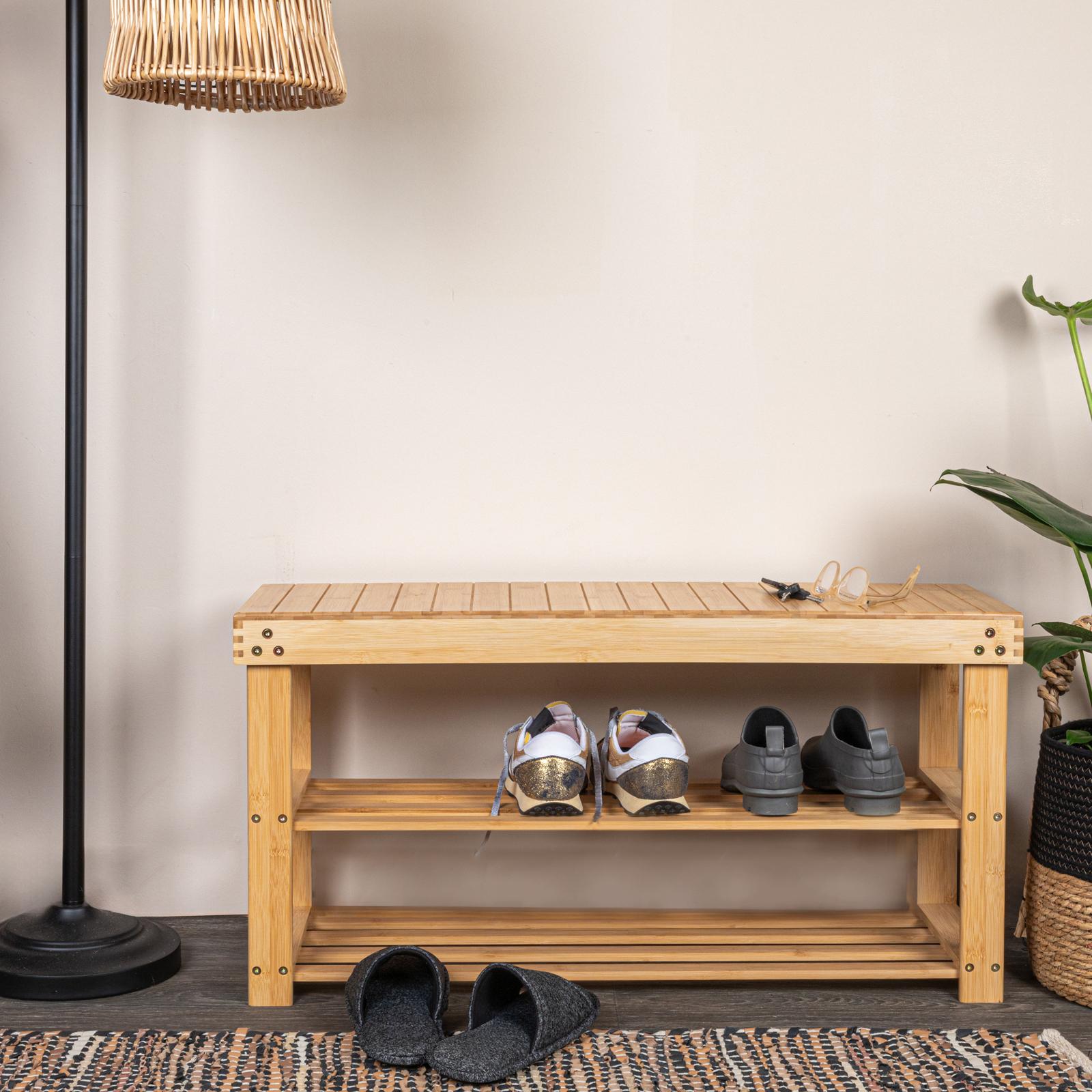 With the addition of this beautiful bamboo bench in your entryway, you will be greeted every day by a convenient spot to sit, relax and kick your shoes off after a long day’s work. This slatted bench seat has a sturdy construction and added storage space for an all-around excellent addition to a comfortable home.