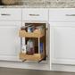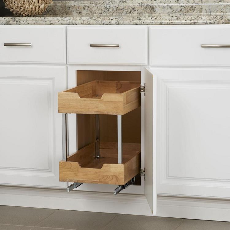 This innovative organizer combines the durability of steel with the natural beauty of wood, providing a stylish and functional storage solution for any kitchen. With its two-tier design and easy-mount full-extension ball-bearing sliding base, it offers ample storage space and convenient access to essentials. This organizer features two tiers of storage space, allowing you to neatly store a variety of items, from cans and dry goods to cleaning essentials. Compatible with most standard kitchen cabinetry, it can be easily mounted directly onto hard surfaces, providing a secure and stable storage solution tailored to any need. Crafted from durable wood and steel, this organizer is built to last. The durable powder coating enhances the strength and resilience of the steel, while the natural wood adds a touch of warmth and sophistication. The simple installation process is made even easier with the included mounting hardware.