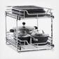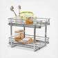 This innovative organizer is designed to optimize under-cabinet space, providing two tiers of storage to accommodate a wide range of items. Crafted from durable chrome-plated steel, this organizer is not only durable but also adds a touch of elegance to kitchen or bathroom decor. This organizer features a unique 2-tier design with dual-sliding drawers. The top and base drawers can be easily pulled out, offering convenient access to stored items. The full-extension ball-bearing sliding mechanisms ensure smooth and effortless operation. Crafted from chrome-plated steel, this organizer is built to last. The chrome finish not only adds a sleek look but also provides corrosion resistance, ensuring long-term durability and functionality. With a maximum weight capacity of 33 pounds, this organizer can safely hold a variety of items. Installing it is a simple process, as all the necessary mounting hardware is included. Follow the provided instructions, and the organizer will be ready for use in no time.