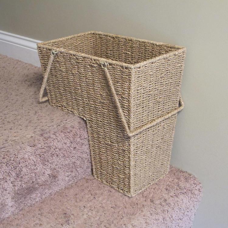 A unique storage option, this wicker stair basket offers a way to store frequently used items in an easy-to-access and convenient basket. This basket will make your daily routines easier and cut down on your trips up and down the stairs.