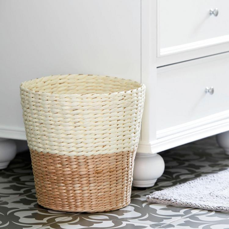 • This waste basket has a two-tone design, lending a slightly more sophisticated look than your standard wicker waste basket