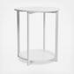 This round end table has a minimalist, modern style and a low profile, making it perfect for use as a side table, end table, nightstand, or as a small table in any space in your home or office. The rounded table top and storage shelf are perfect to display decorative pieces or keep small items stored away neatly. This round end table has a white steel frame, and the table top and shelf are made of quality engineered wood with a smooth white laminate exterior. Not to mention, the smooth laminate ensures the shelves are durable, easy to clean and attractive. The all white-inspired element adds an easeful, cool-toned elegance to this piece and offsets the modern industrial metal frame. The neutral design easily fits into almost any decor style and perfectly coordinates with other pieces in the Household Essentials Scandinavian White furniture line. The tables minimalist frame allows it to provide essential storage space without taking up too much visual space, and the rounded shape makes the table easy to maneuver around and fit in almost anywhere. This end table is easy to put together and comes ready to assemble.