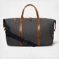A dedicated shoe compartment to protect your clean clothes, and a padded laptop sleeve because who travels without it? Classic styling you prefer: Durable 18oz canvas accented with whiskey leather handles and brass hardware to last you a few lifetimes. It's the perfect balance of form, and function.