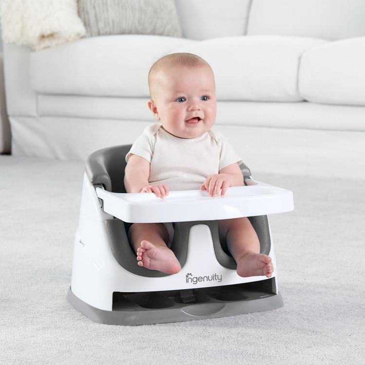 Meals are an important part of family time. Enjoy more laughter and conversation including baby talk – by giving your little one a seat at the table with this feeding chair. The Ingenuity Baby Base 2-in-1 Seat easily attaches to dining chairs so your baby can sit up higher and see more during family dinners. This portable baby feeding seat works just as well sitting with you at the table or as a floor seat during playtime. The removable tray gives your baby their own perfectly sized table, so snacks or toys are easily within reach. When not in use, the tray conveniently tucks away right underneath the booster seat itself. As your baby grows, you can remove the foam seat insert and convert the baby booster into a toddler seat. For all those meals in between, you can count on the wipeable seat and dishwasher-safe tray to leave you more time for family catch-up and less for kitchen clean-up.