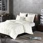Elevate your bedroom with the Masie 3-Piece Elastic Embroidered Cotton Comforter Set. This solid cotton comforter features elastic and embroidered details on the face to create a tufted-inspired design with a modern flair. Hidden bartacking in the comforter secures the filling and creates a clean duvet-like finish. The 2 matching shams handsomely pair with the cotton comforter to complete this modern and sophisticated comforter set. This cotton bedding set uses an antimicrobial treatment that provides built-in freshness protection, reducing the growth of odor causing bacteria to keep fabric lasting longer. Euro shams and decorative pillows are sold separately.