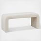 Steve bench has a sleek waterfall design with rounded corners and is upholstered in soft, textured boucle fabric. Perfect addition to any modern contemporary home and also provides a comfortable and cozy place to sit while putting on your shoes or in the bedroom as an extra seat.