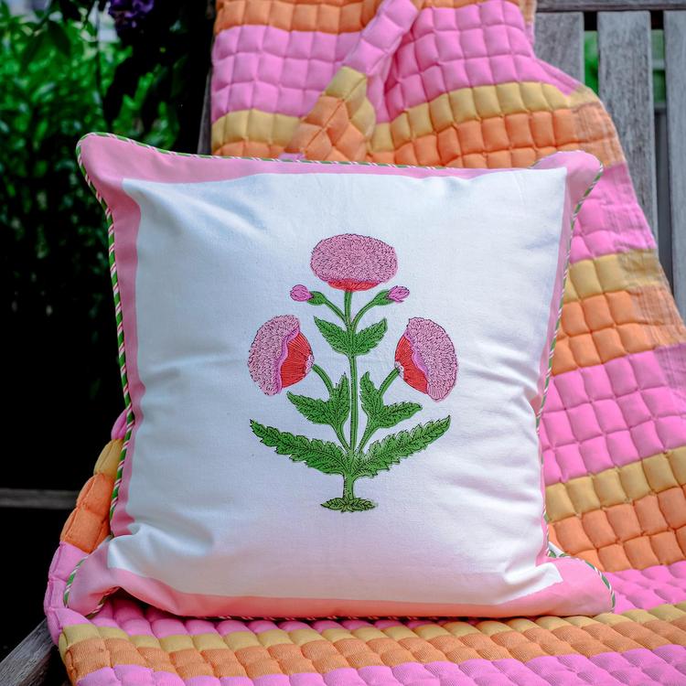 Poppy Blockprint Pillow Cover with Insert