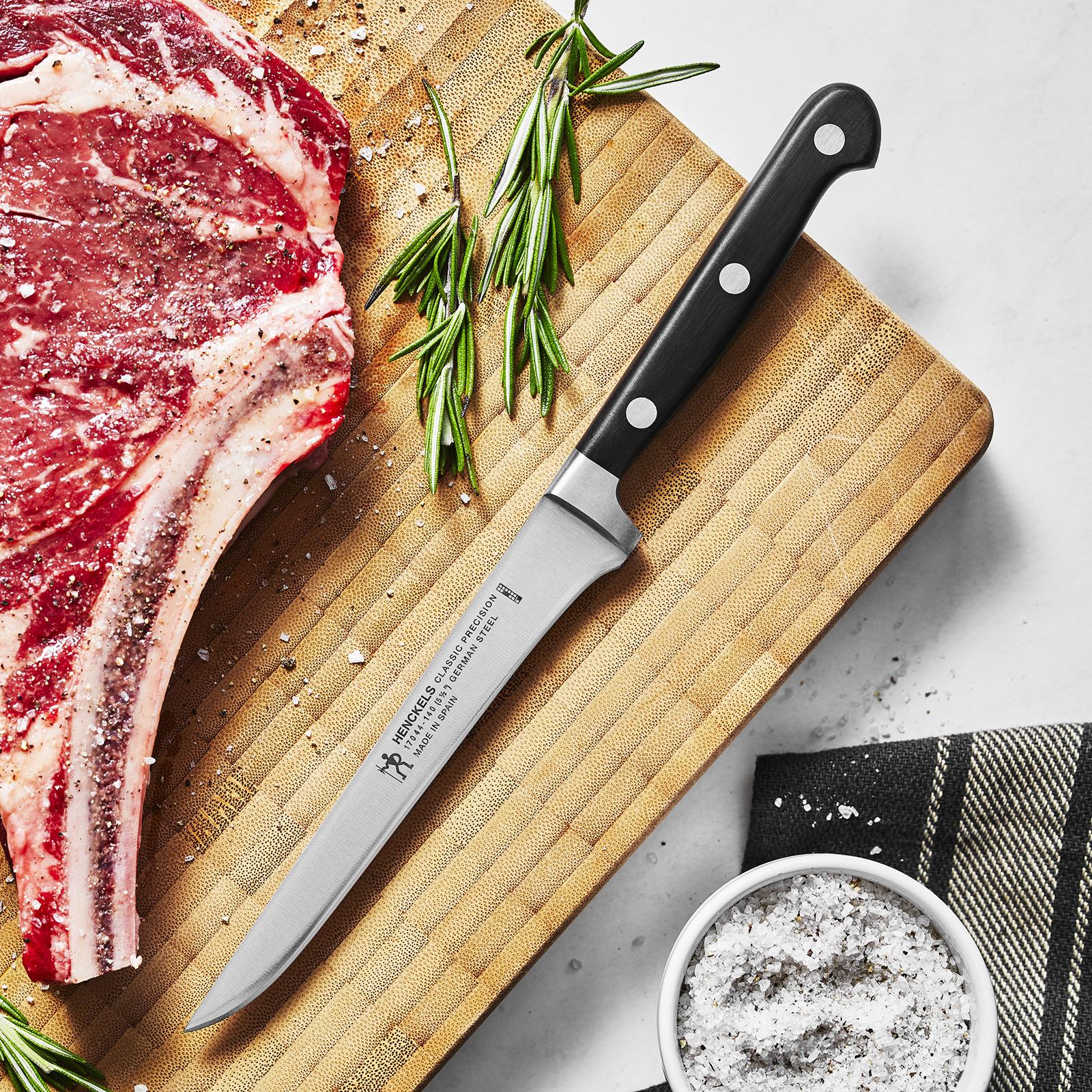 The New Classic Knife high-quality material strengthens this durable. Spanish-made knife that features a razor-sharp blade. Ideal for everyday use, with a seamless transition from blade to handle. Classic Precision knives' fully forged construction provides balance as the rounded spine and curved triple-rivet handles encourage tireless cutting. Cut with confidence, with this essential kitchen cutlery by the leader in value-driven knives since 1895.