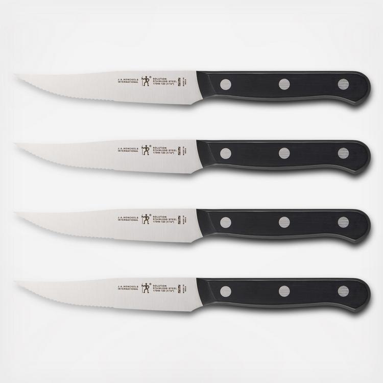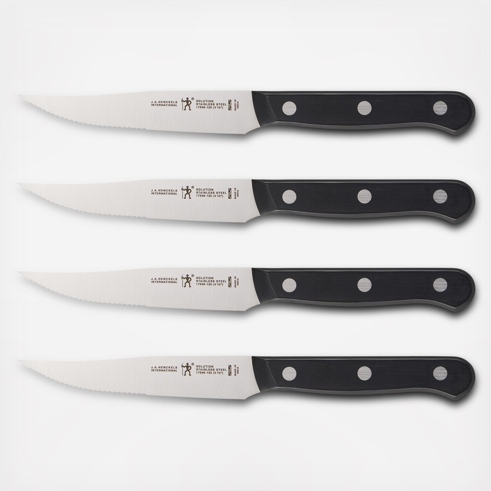 Henckels has been making high quality, everyday knives at an exceptional value. The single-piece, precision-stamped knife blades are lightweight without sacrificing strength and durability. Along with the ergonomic, traditional triple-rivet handle, enjoy maximum maneuverability and fatigue-free cutting. Honed for long-lasting sharpness, the fine-edge blades boast precision cutting. Curved for comfort, the break-proof, triple-rivet handles are pleasant to grip, giving you the control you need to slice through tougher cuts with ease.