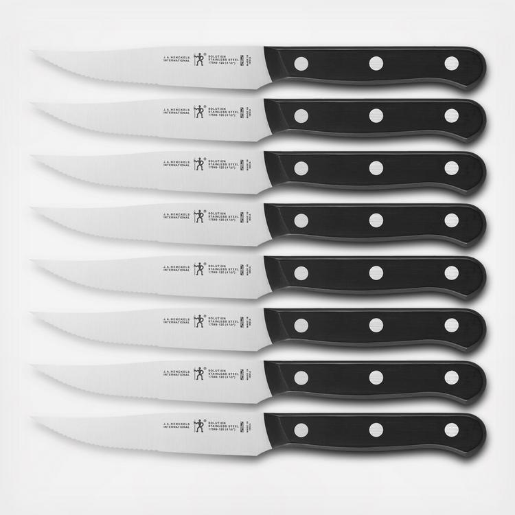 Henckels has been making high quality, everyday knives at an exceptional value. The single-piece, precision-stamped knife blades are lightweight without sacrificing strength and durability. Along with the ergonomic, traditional triple-rivet handle, enjoy maximum maneuverability and fatigue-free cutting. Honed for long-lasting sharpness, the fine-edge blades boast precision cutting. Curved for comfort, the break-proof, triple-rivet handles are pleasant to grip, giving you the control you need to slice through tougher cuts with ease.
