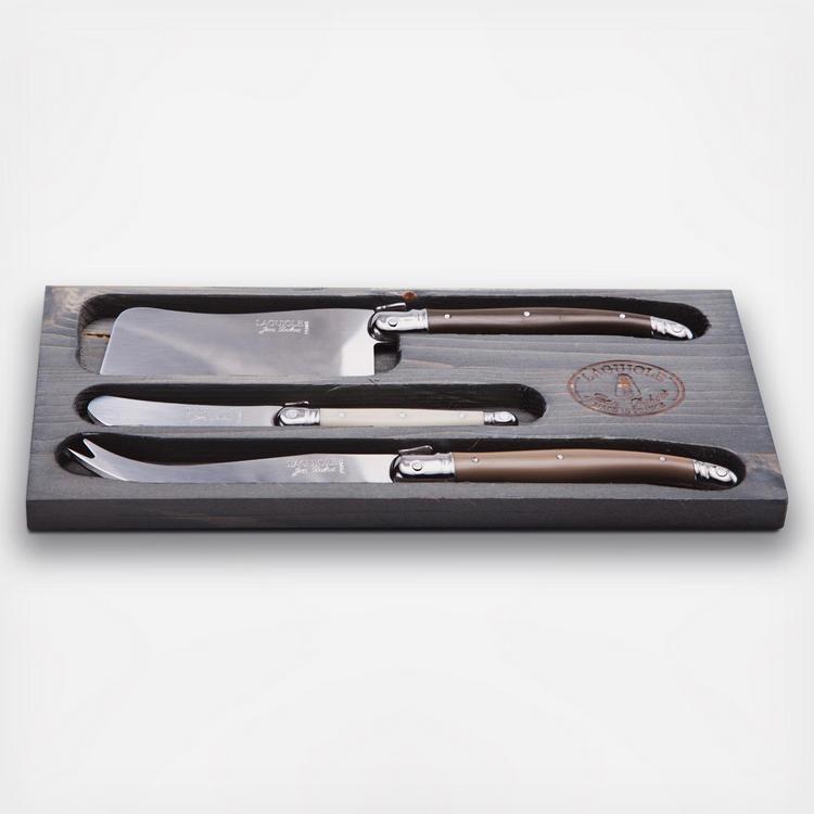 The brightly colored handles on this cheese set will add a bright splash of color to your appetizer plate. This set is dishwasher safe, rust resistant, and will last a lifetime. Each item in this set is put through 25 production stages, before they are stamped, polished, and packaged.