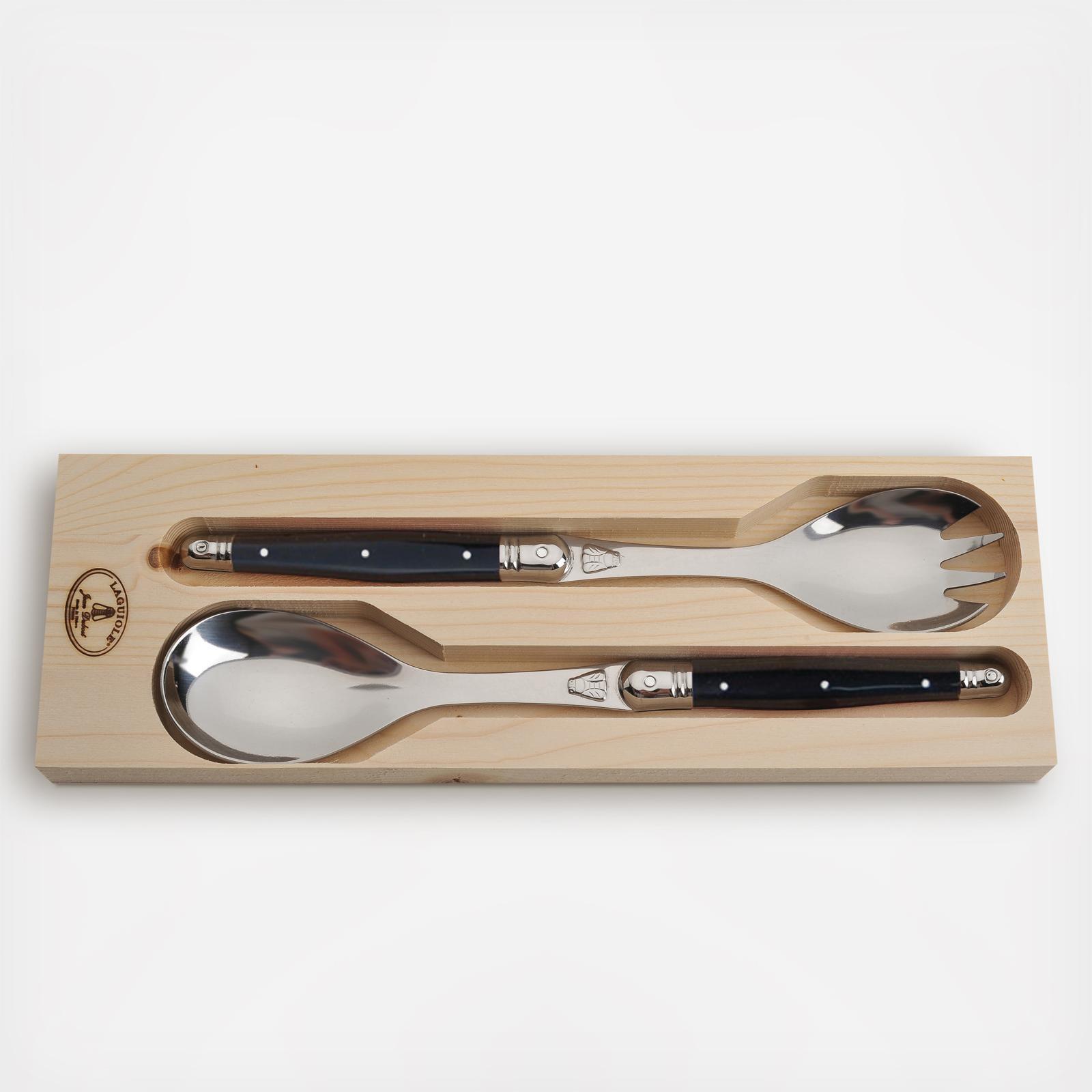 This salad server set looks stunning on any table. With colored acylic handles, these servers compliment any kitchen theme and are appropriate for any occasion. Rust resistant, these servers are made from high-grade stainless steel with metal accent caps.
