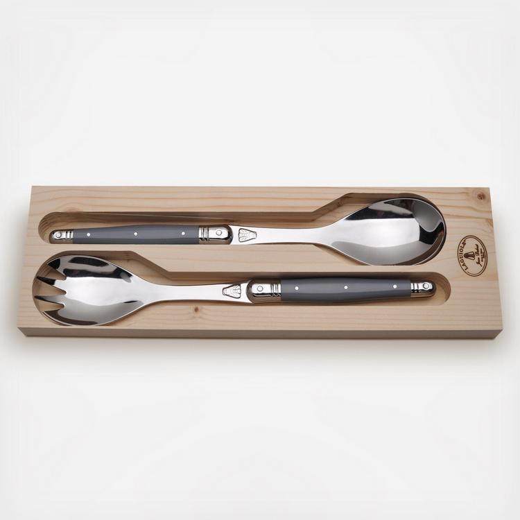This salad server set looks stunning on any table. With colored acylic handles, these servers compliment any kitchen theme and are appropriate for any occasion. Rust resistant, these servers are made from high-grade stainless steel with metal accent caps.