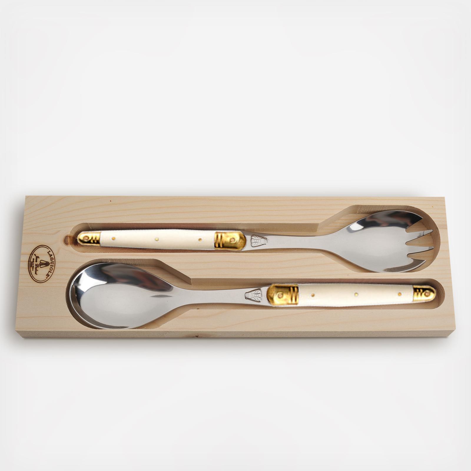 This salad server set looks stunning on any table. With colored acylic handles, these servers compliment any kitchen theme and are appropriate for any occasion. Rust resistant, these servers are made from high-grade stainless steel with metal accent caps.