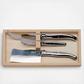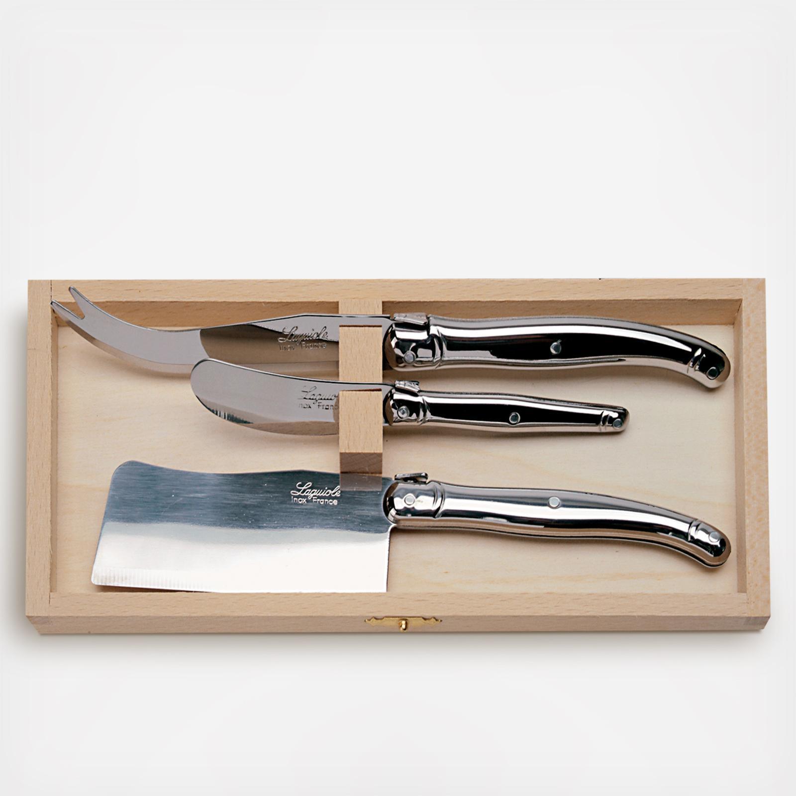 Never worry about your cheese set going out of style with this 3 piece stainless steel cheese set. The cleaver, cheese knife, and spreader are all dishwasher safe, rust resistant, and will last a lifetime. Each item in this set is put through 25 production stages, before they are stamped, polished, and packaged.