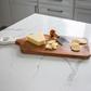 Measuring in at the perfect size for entertaining, this rectangular charcuterie board is a must-have for any kitchen or dining room. Crafted from premium Acacia wood, it provides a flat surface for easy preparation and serving of your favorite charcuterie items. The beautiful white enamel handle provides a hole for hanging while providing a contemporary finish to the board.