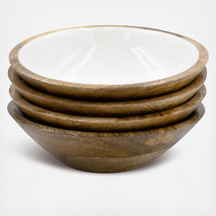 Crafted from high-quality mango hardwood, these versatile serving bowls are perfect for serving fruits or snacks and are sure to be a charming addition to any dining table or kitchen counter. The bowls are coated with a glossy white enamel that not only adds a sleek finish but also ensures durability and easy maintenance. The enamel also serves as a protective layer, making the bowl resistant to scratches and stains, ensuring it remains beautiful for years to come. They also nest together for easy storage.