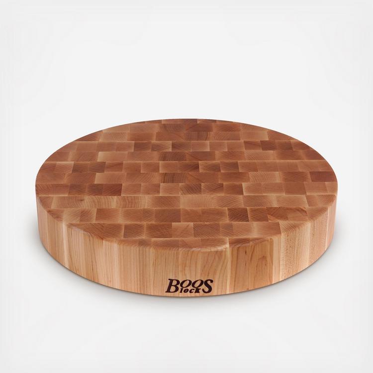 A thick platform perfect for carving, this round cutting board is in hard-rock maple for a stylish look.