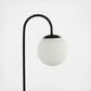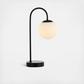 With its sleek lines and black metal finish, this arched table lamp has a modern, minimalist-inspired aesthetic. The frosted glass globe shade diffuses the light from a single LED bulb. Add some mood lighting to a living room, bedroom or dining room.Order two for a chic, modern console table. Quality touches include a weighted base and silk-wrapped cord with in-line switch. Versatile 18" height is perfect for soft, ambient lighting. Eco-friendly 4W bulb included. Takes 1 bulb and compatible with any 5W LED or 25W TYPE "B" or 9W CFL.