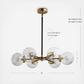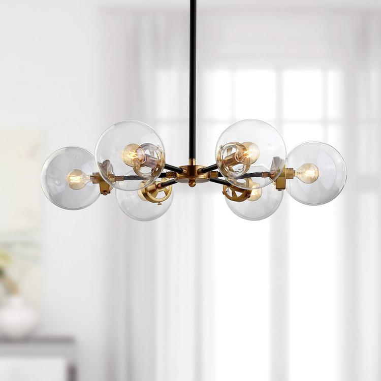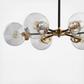 Featuring a brushed brass and flat back finish, this six-light chandelier is both neutral and decorative. With clear glass spheres, this chandelier is decorated carefully to evoke elegant detail. The spoke layout of the arms would be particularly well suited to above a round dining table or a contemporary kitchen island.