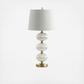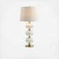 Glass blown into a trio of perfectly aligned fluted orbs makes this shapely lamp base an eye-catching addition to any home decor. Colored in a versatile finish with base and fittings, the look is completed with a crystal finial and linen drum shade. Style extends all the way to the plug with a silk-wrapped cord reminiscent of classic antiques.