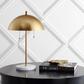 Jazz Age glamour meets modern design in this gold and marble table lamp. Two bulbs provide ample light for a desk or seating area, and the gold leaf finish is an elegant touch. Pull-chain controls adds a vintage touch.
