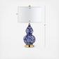 Chinoiserie chic, a blue-and-white floral motif makes this ceramic table lamp a stylish addition to any space. With a base in a brass finish and a finial to match, the double gourd shape will shine in any style of decor. Finished with a silk-wrapped cord, this gorgeous piece will surely be an heirloom of tomorrow.
