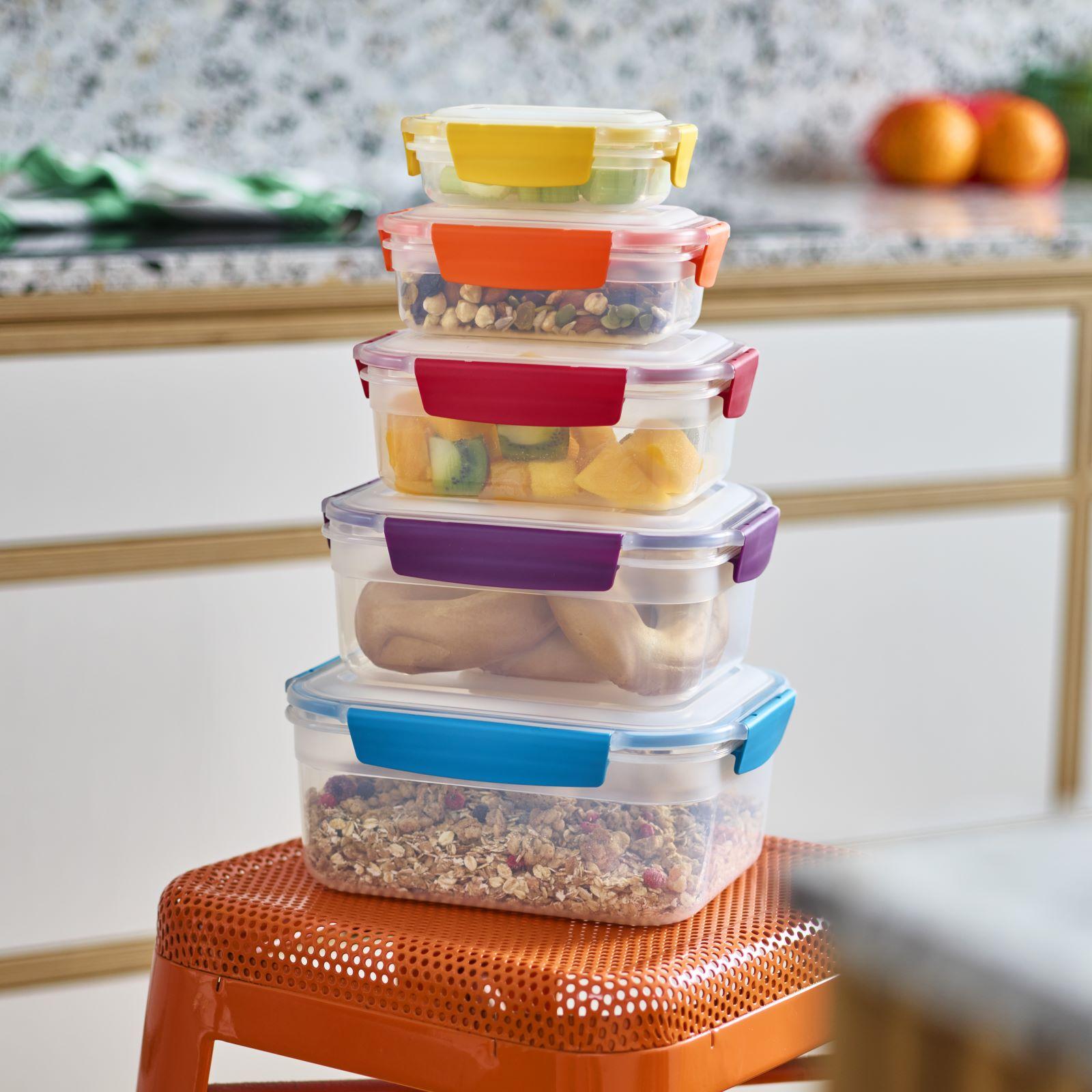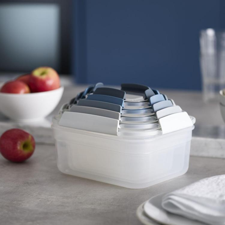 The problem with most storage containers is that they take up precious cupboard space when not in use and usually require the lids and bases to be stored separately, which makes finding and pairing both elements a hassle. With the unique design of Nest™ Lock, container bases nest neatly inside each other and lids clip conveniently together for efficient, space-saving storage. As each element is color-coded too, it's very easy to match lids with bases when you need them. All products in the Nest™ Lock range work together so you can build your own collection to suit your needs, whether it be for fridge/freezer storage, batch cooking or family lunch boxes. All containers feature lockable, airtight and leakproof lids.