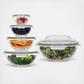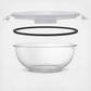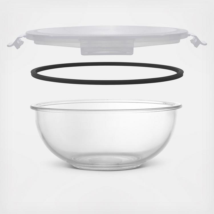 When it comes to glass mixing bowls, you want them sturdy, thick, clear, and space saving, right? If so, you’ll probably love these because they neatly nest with a handle on top for easy compact storage.