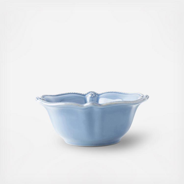 From our Berry & Thread Collection- Rimmed with a simple thread and adorned with a sprinkling of berries, this iconic dinnerware collection embraces the historic motifs of our Bohemian glassware. This cereal/ice cream bowl, with its subtly scalloped edge, is a new take on a classic and versatile shape.