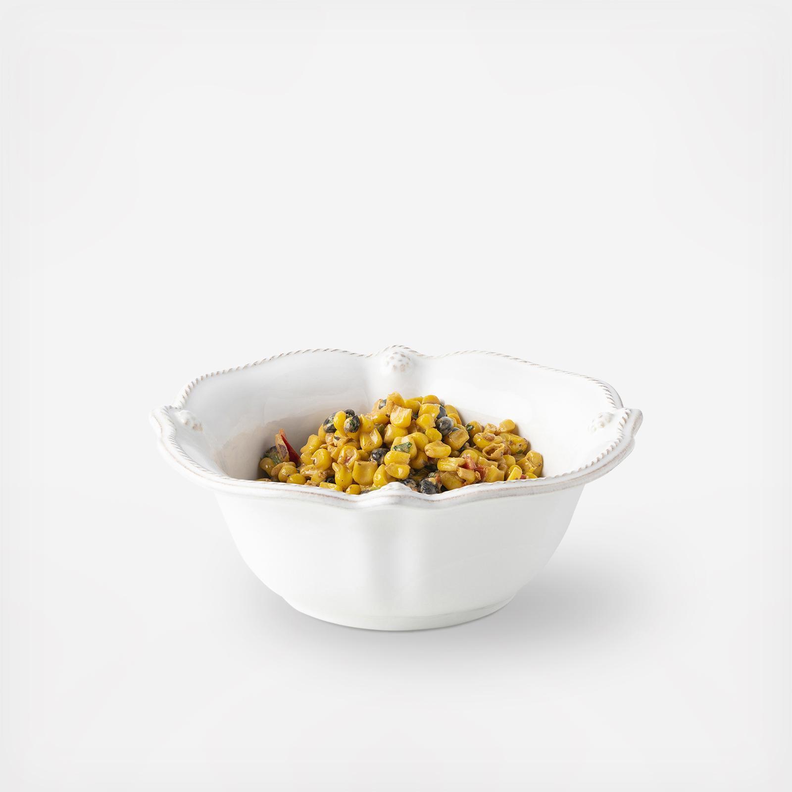 From our Berry & Thread Collection- Rimmed with a simple thread and adorned with a sprinkling of berries, this iconic dinnerware collection embraces the historic motifs of our Bohemian glassware. This cereal/ice cream bowl, with its subtly scalloped edge, is a new take on a classic and versatile shape.