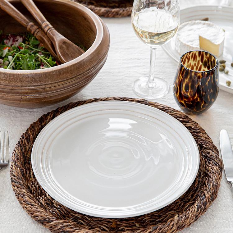 From our Bilbao Collection - Hand-hewn in a classic coupe shape and finished with our warm and translucent signature whitewash glaze, this dinner plate will elevate any casual gathering with a stunning combination of modernity and patina.