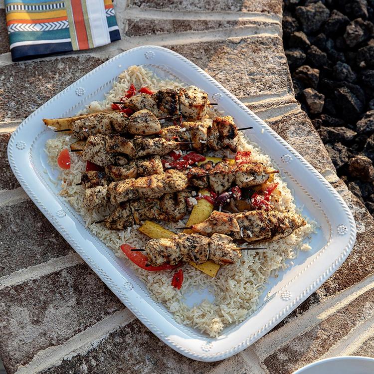 From our Al Fresco Collection- Trimmed with our simple thread and adorned with a sprinkling of berries, this durable serving tray will transport your dinner directly from the grill to your table with ease.