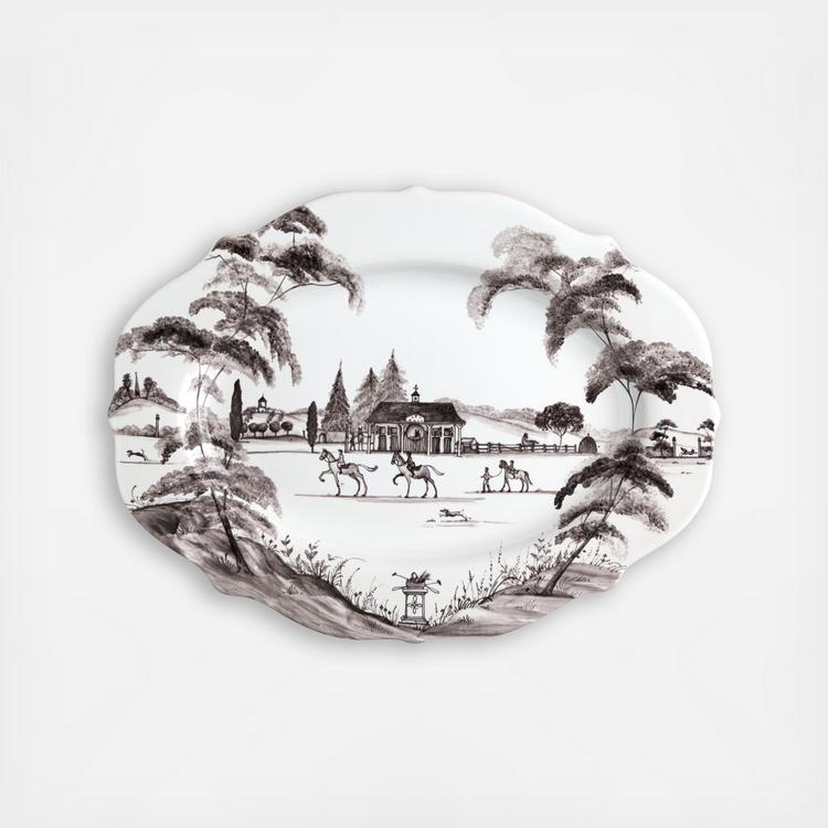 From Juliska's Country Estate Collection- bring a dash of the graceful equine and noble pursuits to the table with this stately serving platter that serves as handsome housing for everything from Sunday roast to an assortment of cheeses. Juliska's ceramic stoneware is made in Portugal and is oven, microwave, dishwasher and freezer safe.