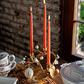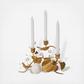 The natural beauty and whimsy of a pumpkin vine—with all its curling tendrils of loveliness—compose this enchanting hand-sculpted candlestick holder that has been gilded in gleaming gold to set an elegant table for resplendent autumn entertaining.