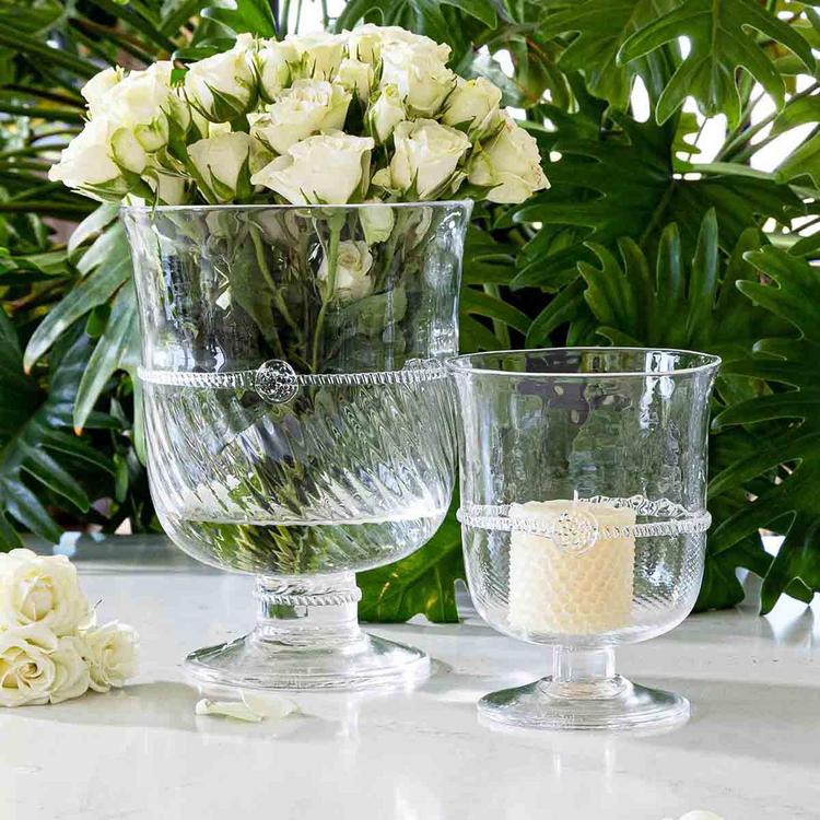 This eye-catching hurricane imbues exquisite beauty into any space you wish to illuminate with twinkling candlelight. Made of diaphanous Bohemian glass using a groundbreaking technique by our master glass artisans, our Graham collection achieves its shimmering spiral optic pattern and jewelry-like thread trim. This sets an instantly romantic scene for sparkling soirées and also makes a gorgeous vase for fresh flowers. Especially stunning when displayed in pairs or clusters.