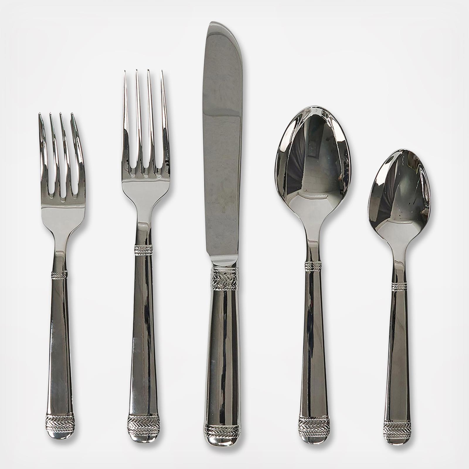 From our Le Panier Collection - This radiant and refined collection is artfully embellished by meticulously detailed braiding, which was inspired by the woven motifs of equestrian and nautical traditions. Crafted of 18/10 Stainless Steel, it serves up equal portions of practicality and polish - for everything from fuss-free suppers to formal celebrations.