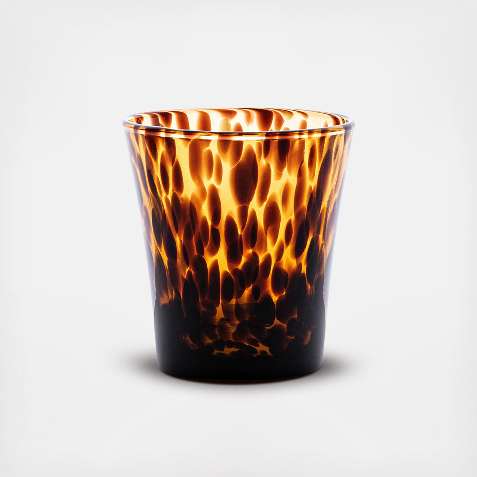 Richly hued tortoiseshell glassware with translucent brown body and dark specks make a handsome statment on every table. This versatile small tumbler can hold everything, from fruit infused spritzers to fresh juices and a hand-crafted cocktail.