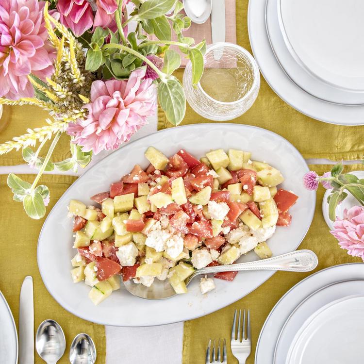 From our Quotidien Collection - For your main-course masterpiece! Our platter's simple organic form paired with lustrous white glaze creates the perfect backdrop for your piece de resistance.