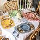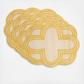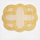 Add a fresh pop of color and natural woven textures to the table with these eye-catching placemats that create a chic and bold foundational layer for your table settings, with their scalloped silhouettes and classic quatrefoil pattern, trimmed in vibrant and happy hues.