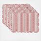 Our favorite motif from the Villa Sevilla pattern is transformed into jacquard stripe in red and cream, tailored with a sweetly scalloped edge. This quilted placemat brings an irresistibly cheerful, charming and traditional feel to place settings, whether it’s Sunday supper or a festive holiday brunch.