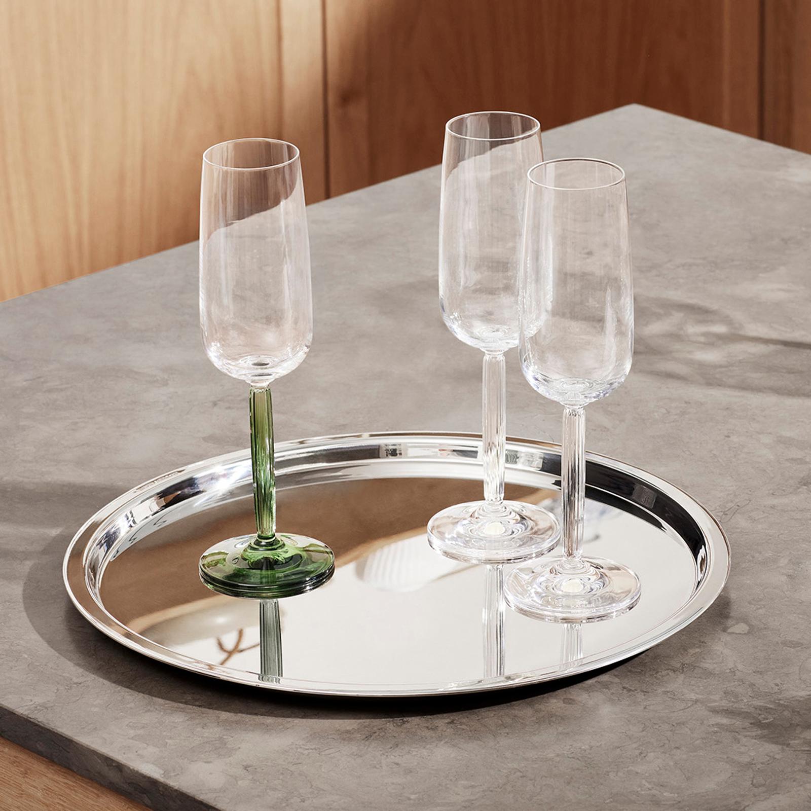 A good champagne tastes even better when served in elegant champagne glasses, which also instantly make the atmosphere more festive. Pour your favourite bubbles into this elegant champagne glass with a clear stem and base from the Kahler's Hammershøi series. It comes in a pack of two and is available either in an all-clear variant or in this coloured variant with a green stem and foot, adding a new dimension to the stem's iconic grooves. As soon as you hold the glass and drink from it, you get a clear sense of Kahler’s proud craftsmanship traditions. It feels nice and weighty in your hand, and the proportions are balanced and iconic. The champagne glasses match the other pieces in the Hammershøi series perfectly and will make your table setting and atmosphere a little more festive.