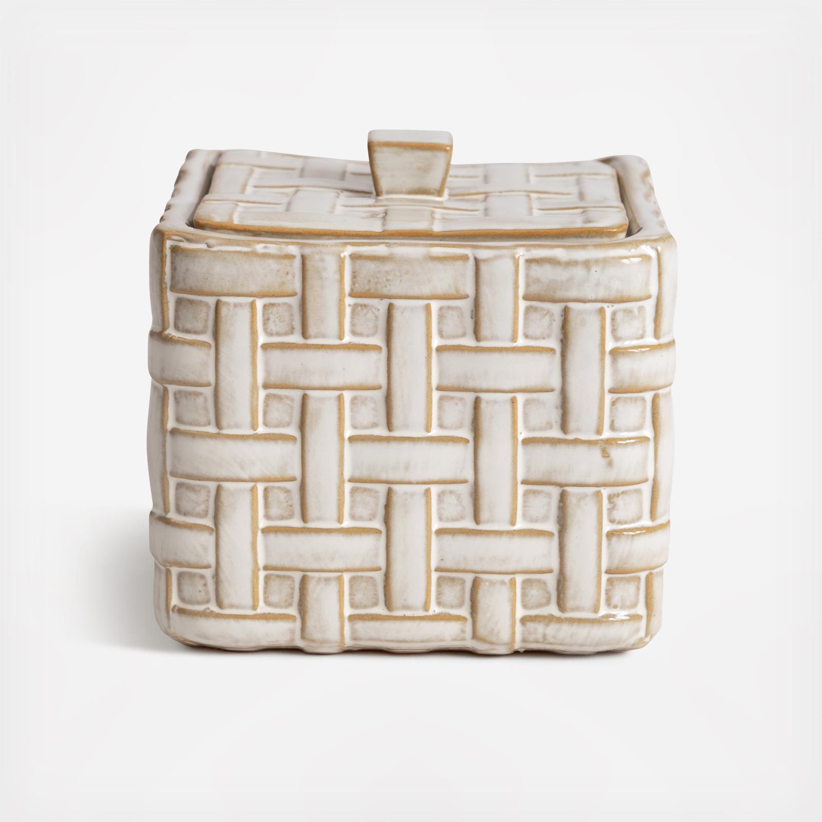 Made from embossed porcelain and inspired by woven raffia palms, this accessory set adds a touch of natural sophistication to your bathroom.