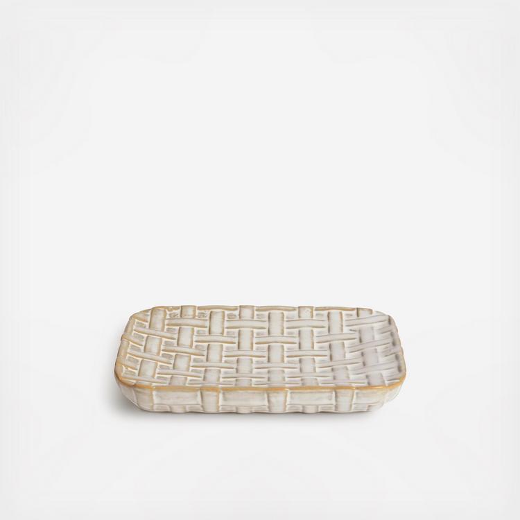 Made from embossed porcelain and inspired by woven raffia palms, this accessory set adds a touch of natural sophistication to your bathroom.