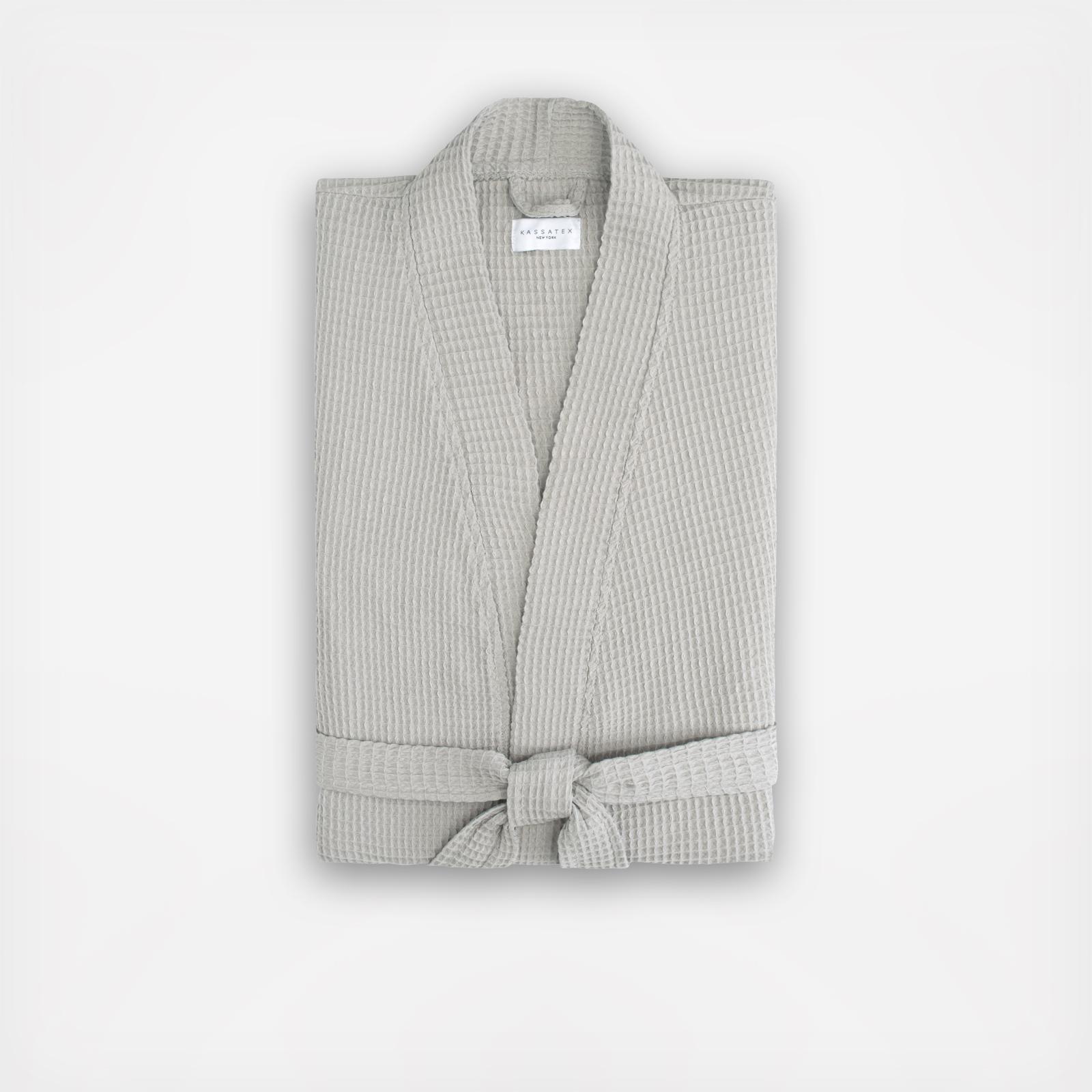 The Kassatex Kimono Waffle robe is the perfect alternative to the classic waffle robe. Featuring the same classic cotton waffle weave, the Kimono robe does not have a terry lining making it the pefect option for those looking for a light weight and airy--yet classic robe.