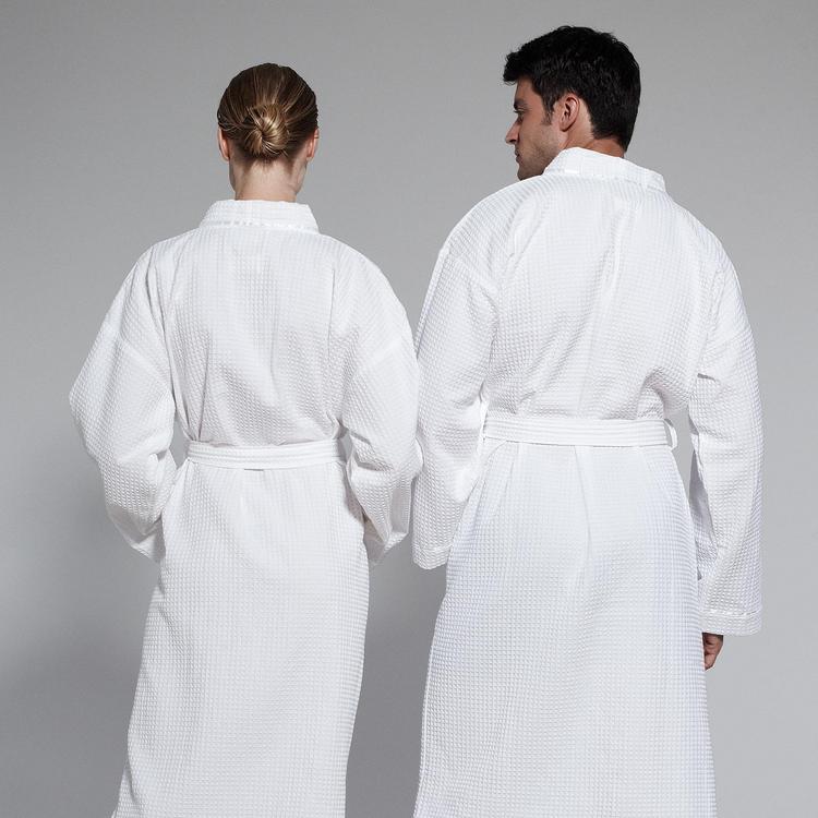 The Kassatex Kimono Waffle robe is the perfect alternative to the classic waffle robe. Featuring the same classic cotton waffle weave, the Kimono robe does not have a terry lining making it the pefect option for those looking for a light weight and airy--yet classic robe.
